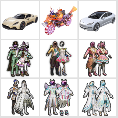 bgt-3载具12特效19粉套-新版玛莎-天之羽翼套装-洛天依-第五大道-冷魅冰骑套装-风花雪月M4-特斯拉-鬼马...