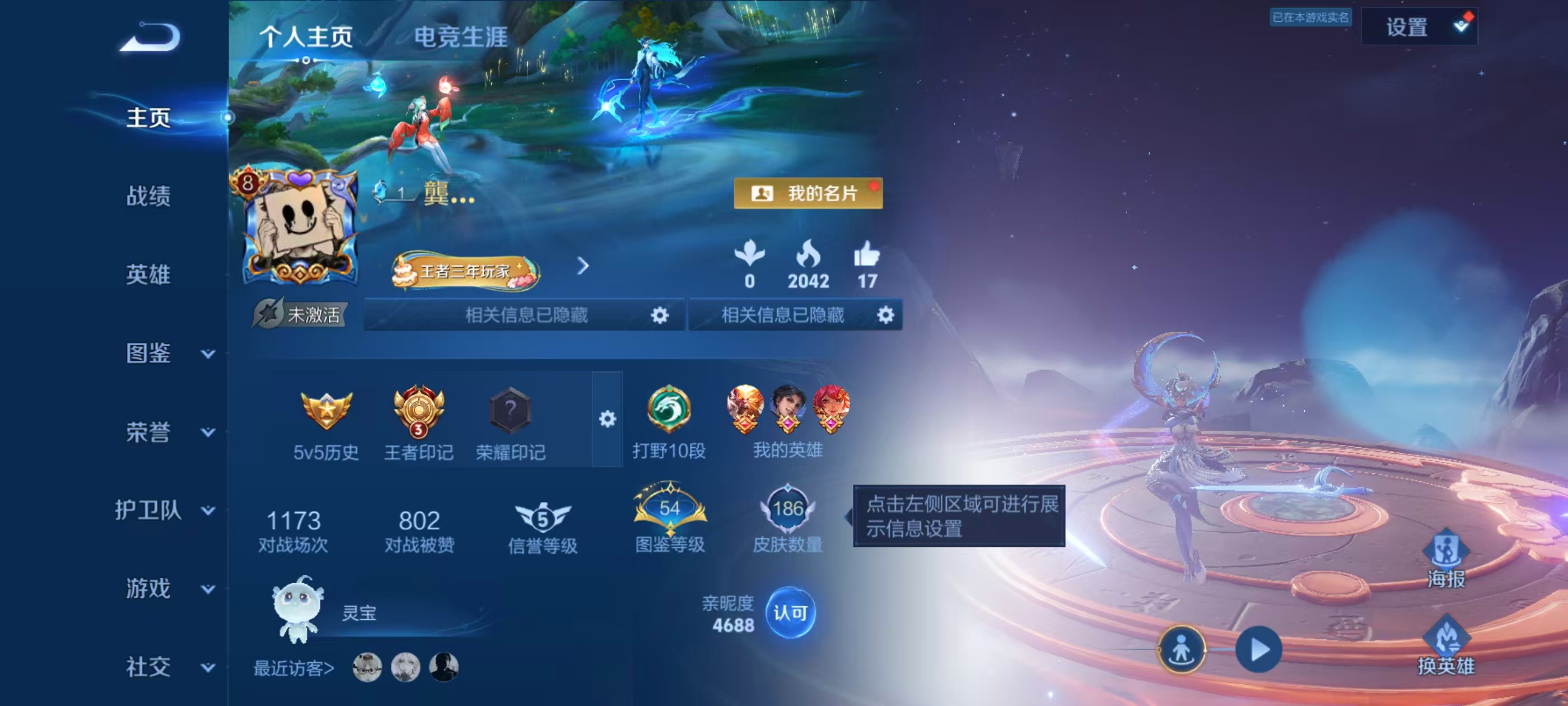 适配系统:安卓 角色名:... 信誉分:100 账号类型(腾讯):QQ 排位赛:允许 巅峰赛:允许 段位:最强王者 英雄数量:129 皮肤数量:186 分销起租时长:2 VIP等级:8 是否禁言:否