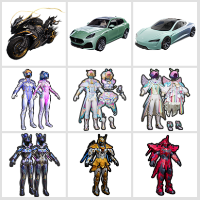 3个红装沙丘之主图卡盟赵云云鸾火箭少女101美雪m4墨龙九天3辆不同车型的载具