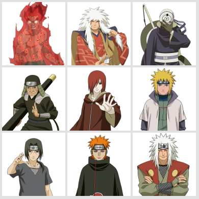 须佐卡卡西、秽土长门、秽土三代、死门凯、白面具、自来也