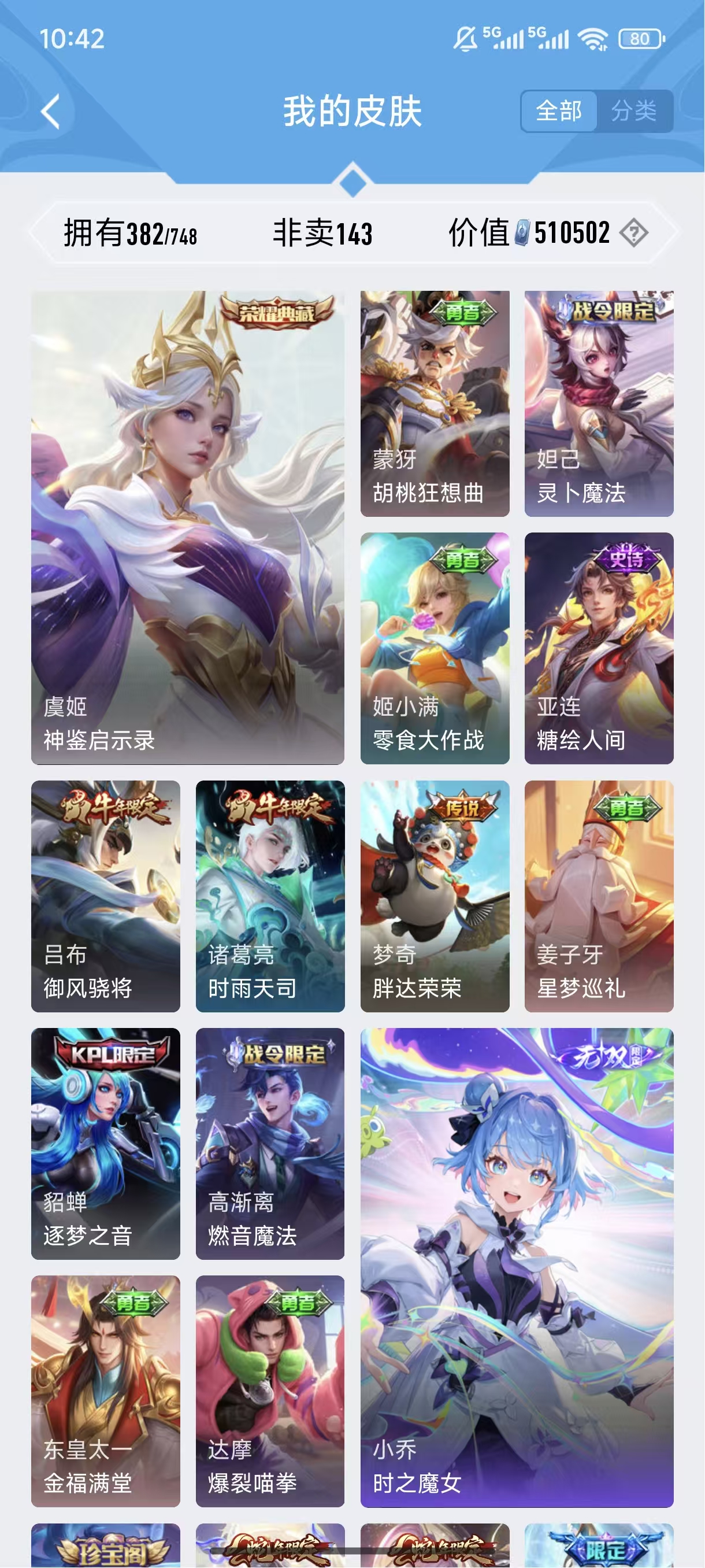 S400,V11,无双贵十,382皮肤,*初的交响 银白咏叹调 九霄神辉 江川户柯南 怪盗基德 雪境奇遇 天机白泽...