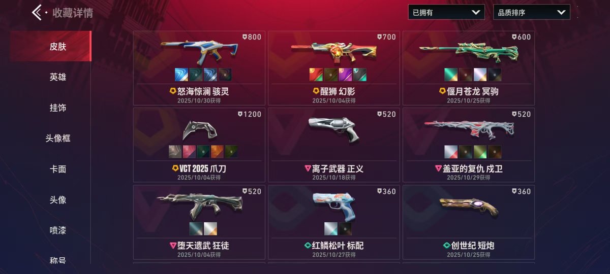 22级收藏家 VCT爪刀 怒海惊澜 骇灵 醒狮 幻影 偃月苍龙 冥驹 离子武器 正义 盖亚的复仇 戍卫 堕天遗武 ...