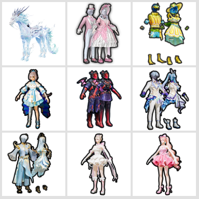 16粉装15升级枪/冰绡玉鳞/圣域龙宝僚机/全套洛天依、千金淑猫、羊梦糖心/圣域金龙、灵珠游龙、灵猫飞行器/