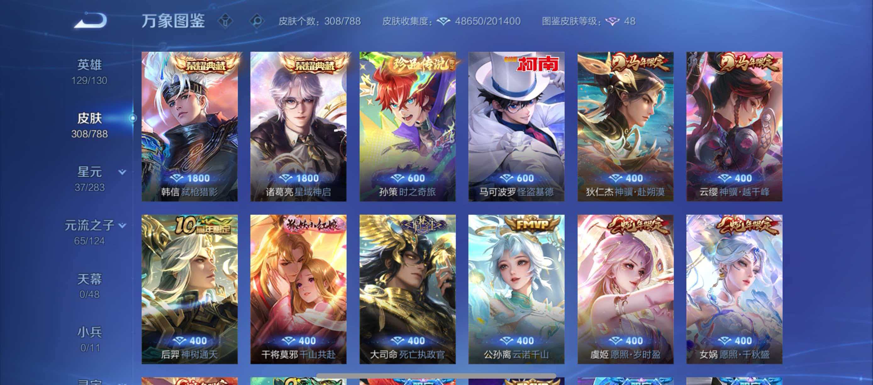 Y051,V8,308皮肤,弑枪猎影 星域神启 时之奇旅 怪盗基德 愿照.九州拓 •琥珀纪元 浮生妄 神骥.赴朔...