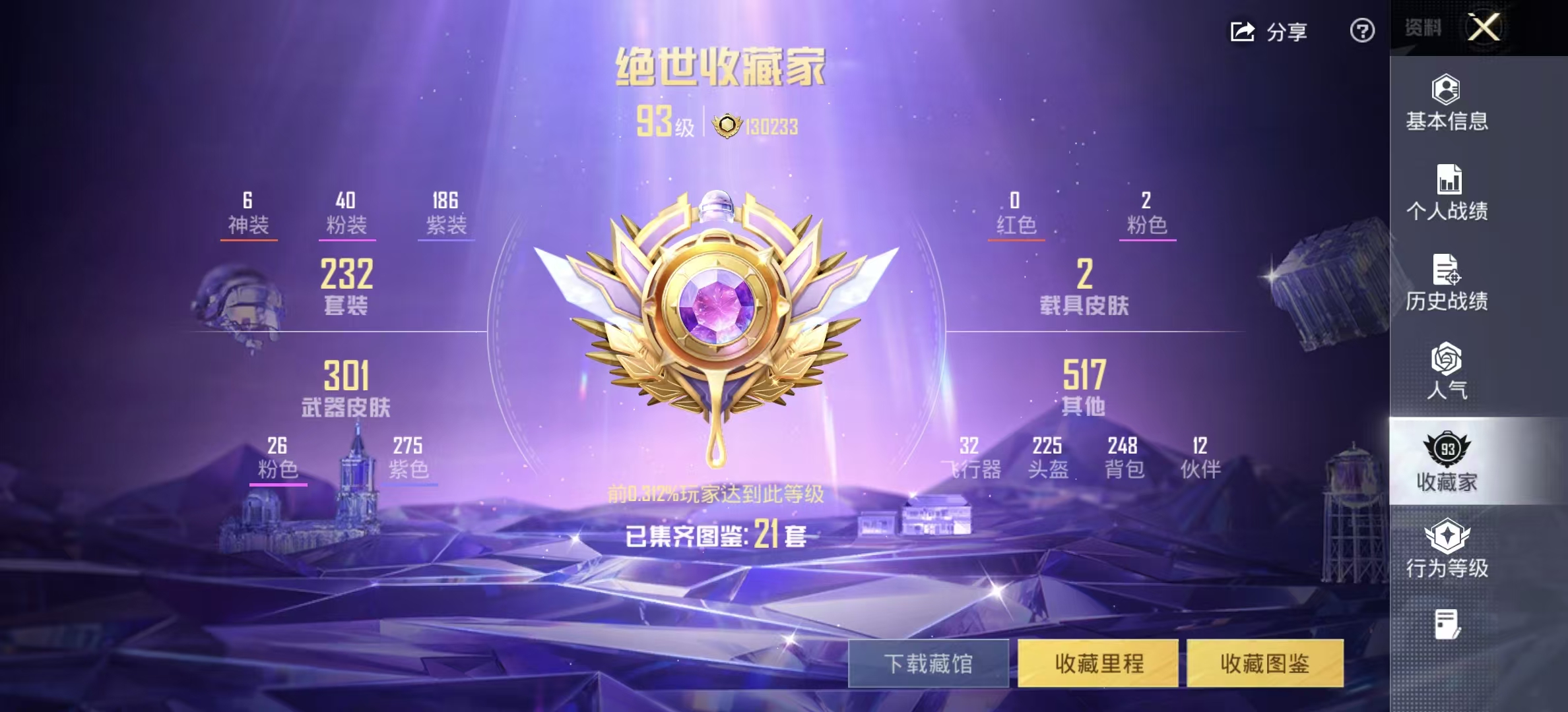 适配系统:安卓 红装数量:6 账号类型(腾讯):微信 分销起租时长:1 载具皮肤:2 粉色时装数:40 套装数量:234 特效枪数量:26 枪皮数量:304