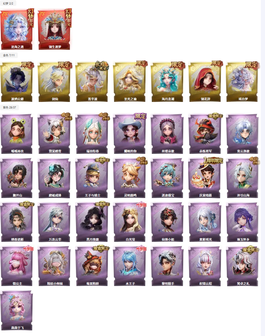 满图鉴2红7金29紫非遗皮沧海之遗剑仙莲华渡瑶台梦渡鸦赤炼将军泽引山海绣春逍影