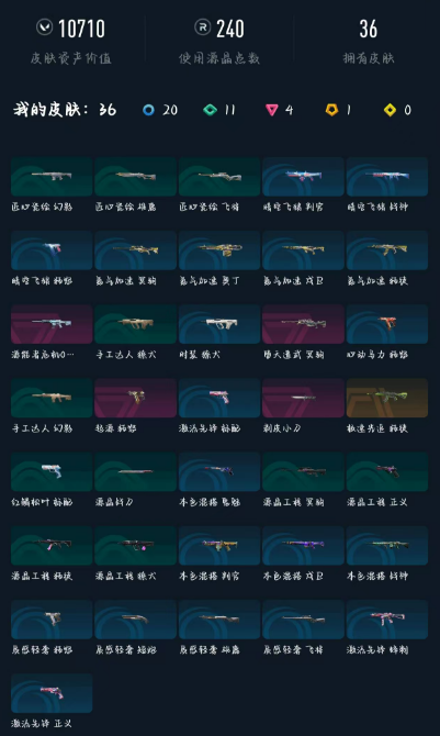 武器皮肤数量:36 适配系统:安卓 传奇数量:1 卓越数量:4 终极数量:0