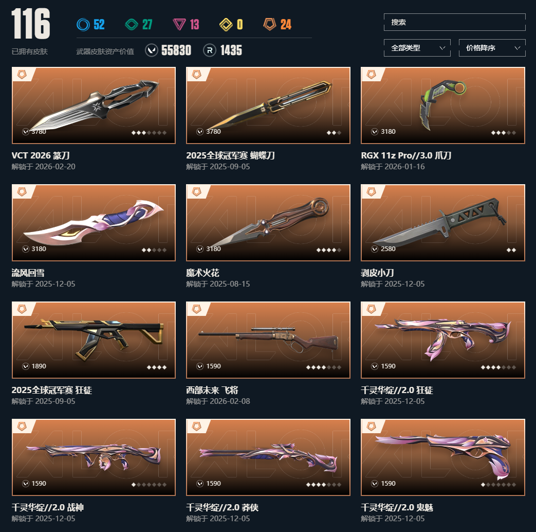 武器皮肤数量:116
