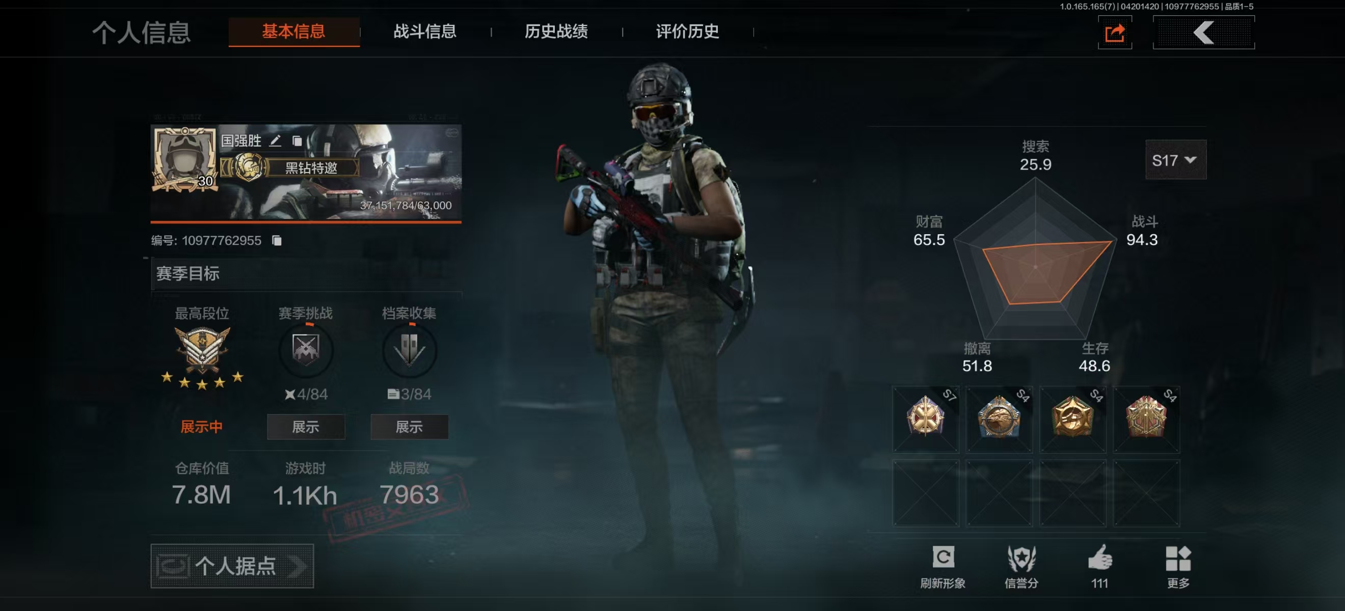 刀皮5金枪皮17仓库价值7.9M皮肤长夜千军武将,套金客莫雷尔,苍白隐者伪装服等,以及其他配件