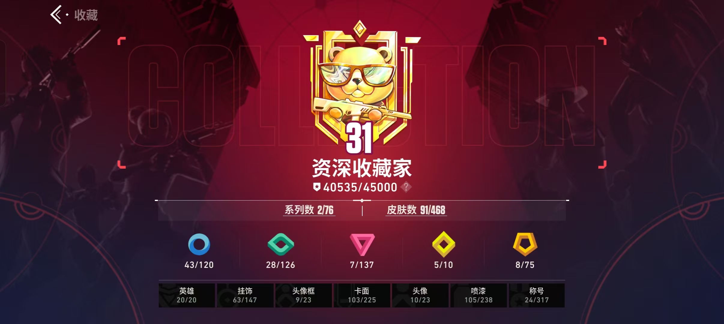 武器皮肤数量:91 适配系统:安卓 传奇数量:7 卓越数量:5 终极数量:8